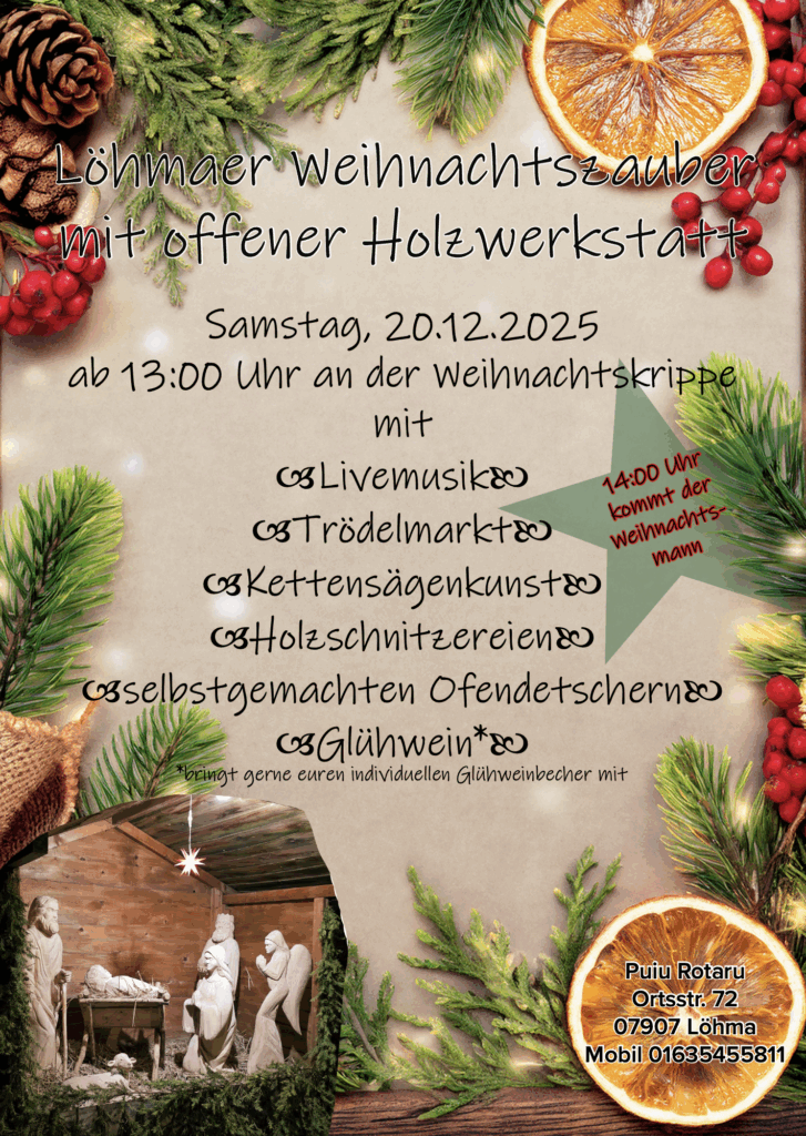 Herzliche Einladung zum Löhmaer Weihnachtsmarkt mit offener Holzwerkstatt!